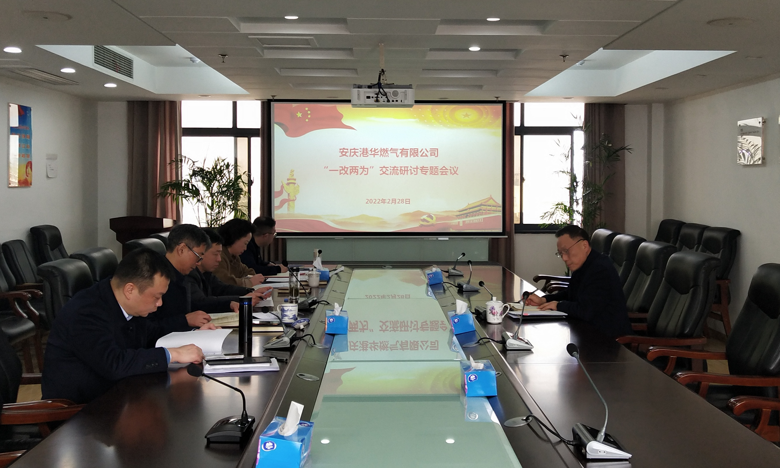 2月28日,安慶港華燃氣有限公司黨委書記、董事長何族興主持召開黨委會議暨“一改兩為”大學習大討論專題研討會議,公司黨委班子成員參加會議。