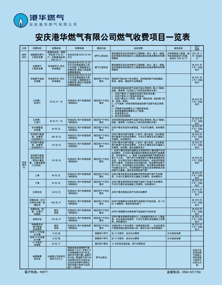 安慶港華燃?xì)庥邢薰臼召M項目一覽表(2023)