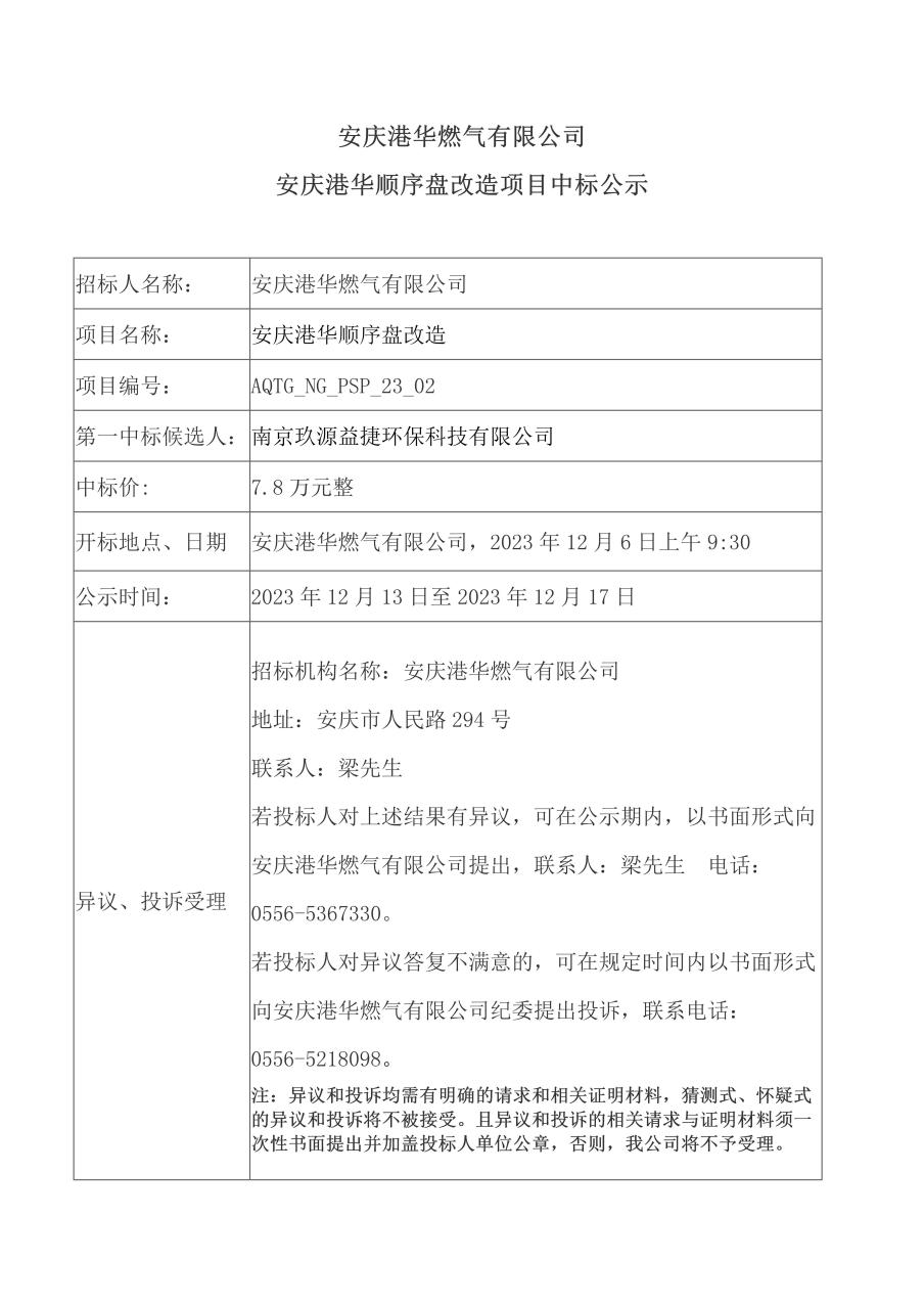 安慶港華順序盤改造項目中標公示 發(fā)布時間:2023-12-13    閱讀次數(shù):3218次