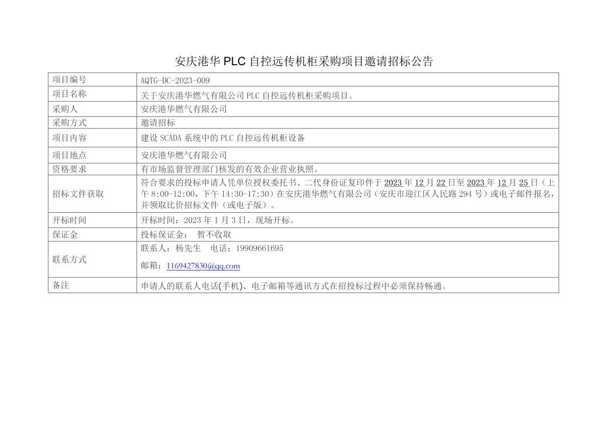 安慶港華PLC自控遠(yuǎn)傳機(jī)柜采購項(xiàng)目邀請招標(biāo)公告 發(fā)布時(shí)間:2023-12-21    閱讀次數(shù):3229次