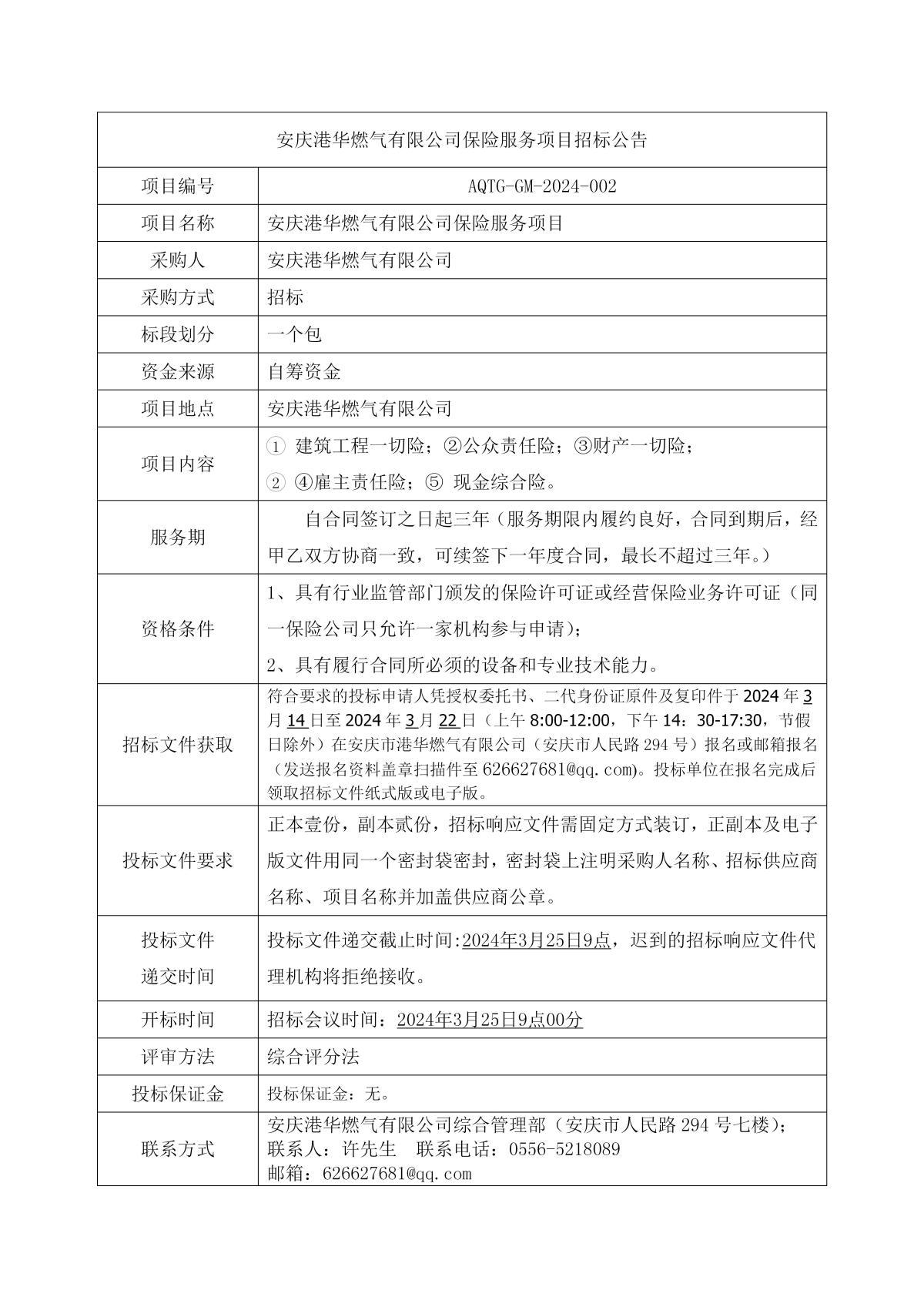 安慶港華燃?xì)庥邢薰颈kU(xiǎn)服務(wù)項(xiàng)目招標(biāo)公告 發(fā)布時(shí)間:2024-03-14    閱讀次數(shù):3506次