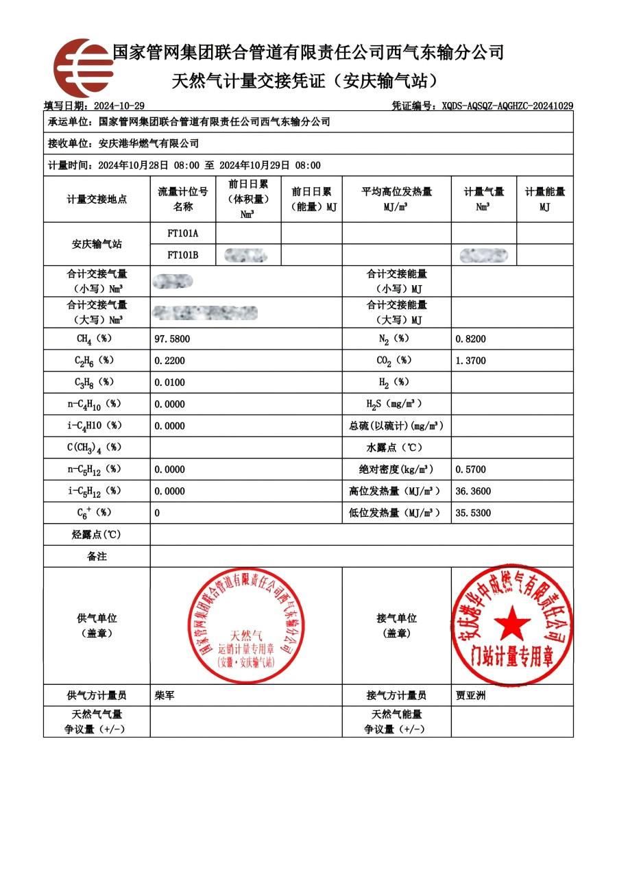 2024年10月份供氣可靠性關(guān)鍵指標(biāo)