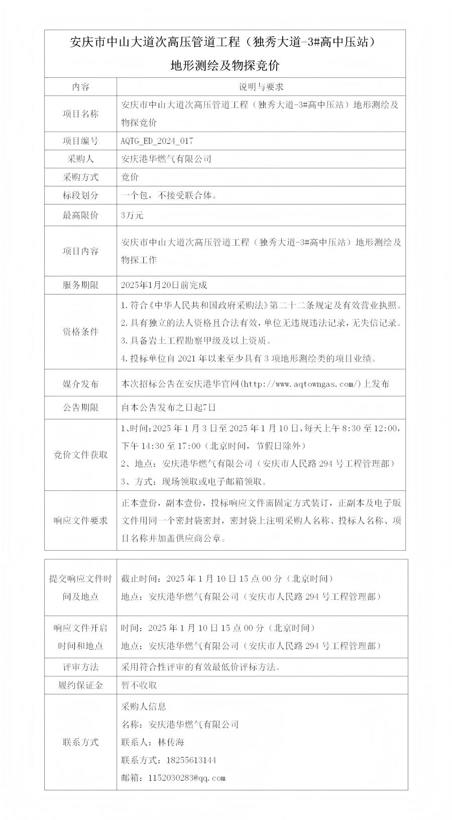 安慶市中山大道次高壓管道工程(獨(dú)秀大道-3#高中壓站)地形測(cè)繪及物探競(jìng)價(jià)