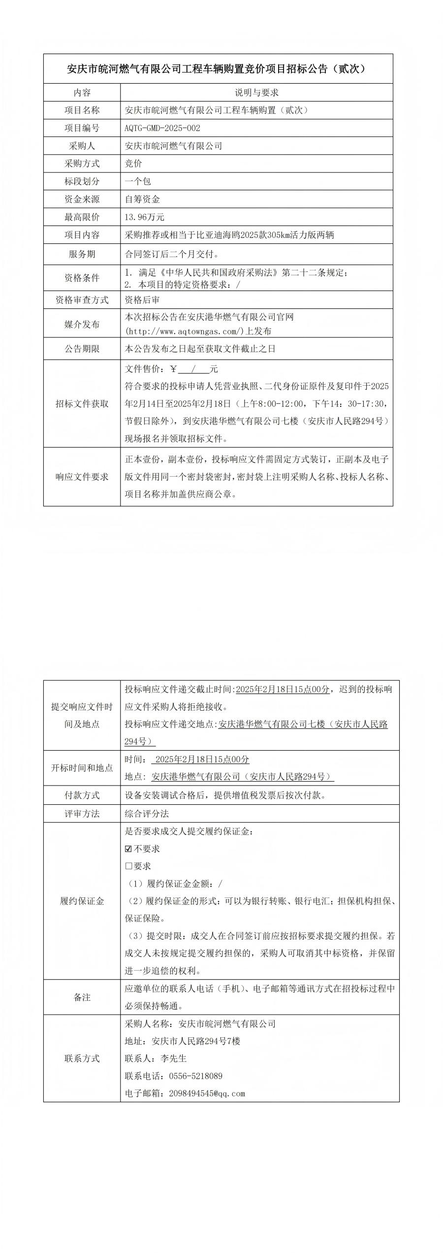 安慶市皖河燃?xì)庥邢薰竟こ誊囕v購(gòu)置競(jìng)價(jià)項(xiàng)目招標(biāo)公告(貳次) 發(fā)布時(shí)間:2025-02-14    閱讀次數(shù):2242次