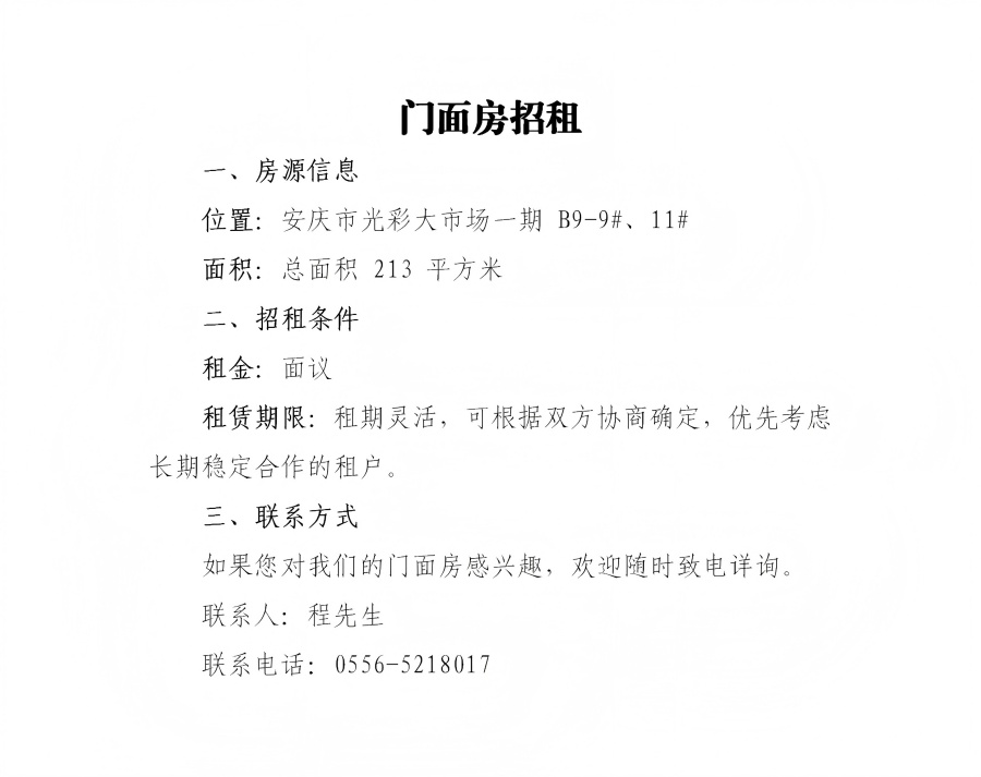 門面房招租