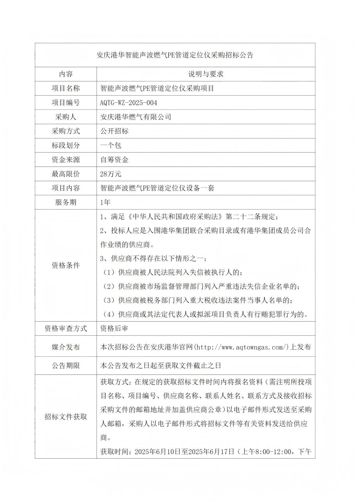 安慶港華智能聲波燃氣PE管道定位儀采購招標(biāo)公告