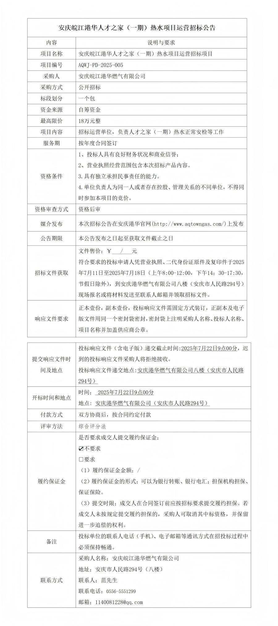 安慶皖江港華人才之家(一期)熱水項目運營招標(biāo)公告