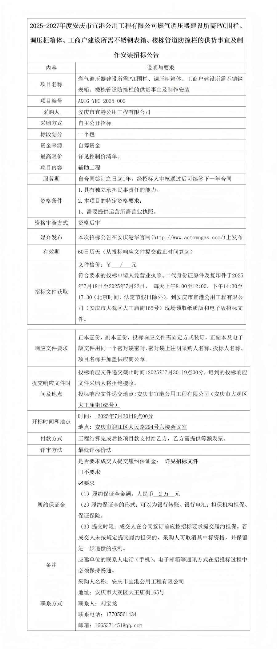 2025-2027年度安慶市宜港公用工程有限公司燃?xì)庹{(diào)壓器建設(shè)招標(biāo)公告