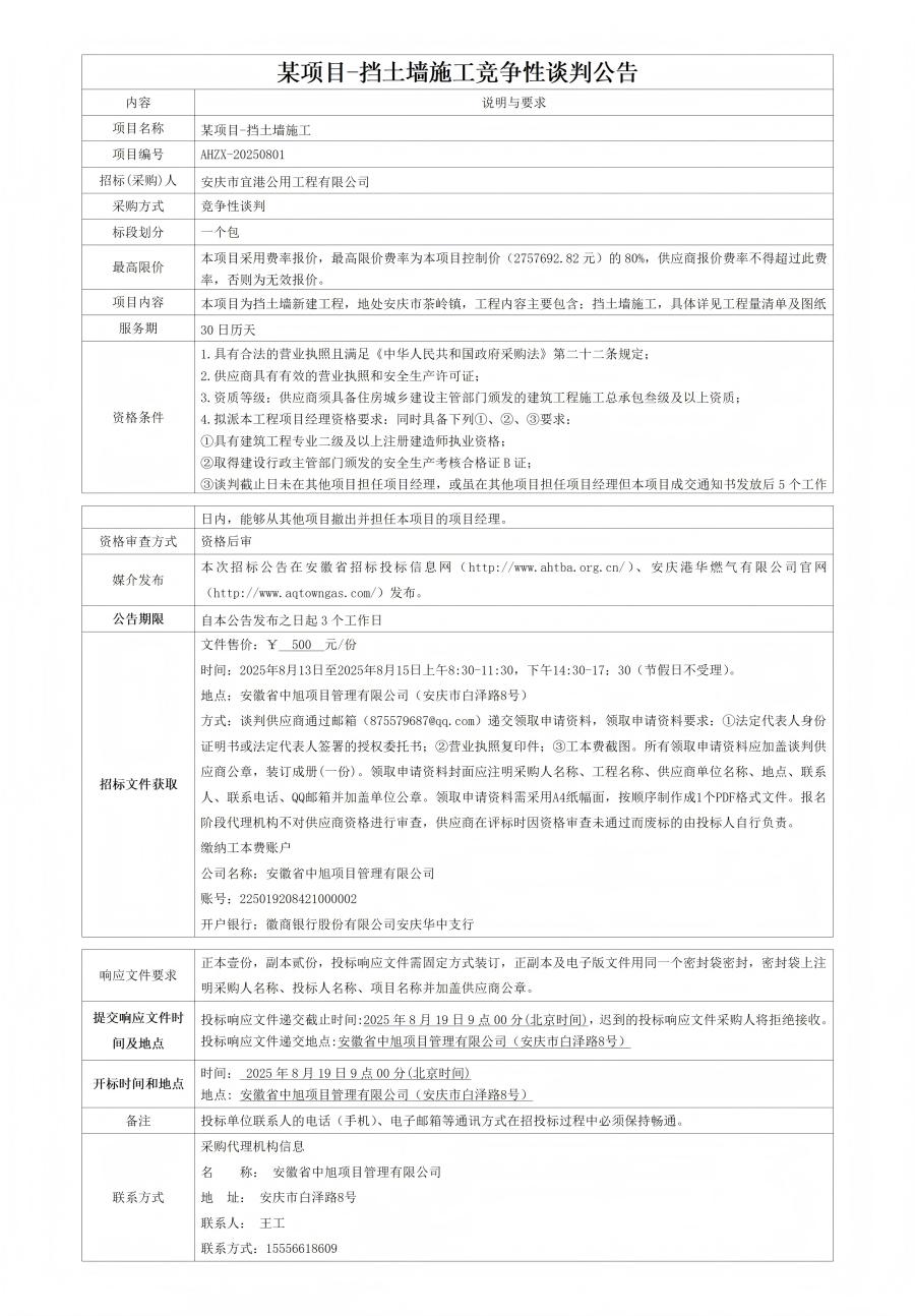某項(xiàng)目-擋土墻施工競(jìng)爭(zhēng)性談判公告