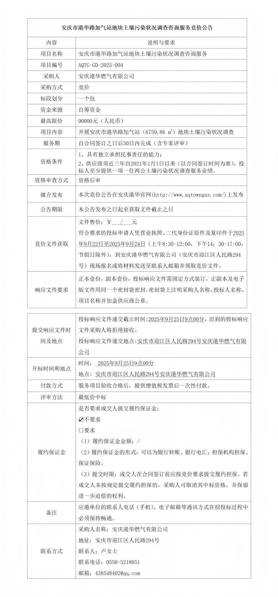 安慶市港華路加氣站地塊土壤污染狀況調(diào)查咨詢(xún)服務(wù)競(jìng)價(jià)公告