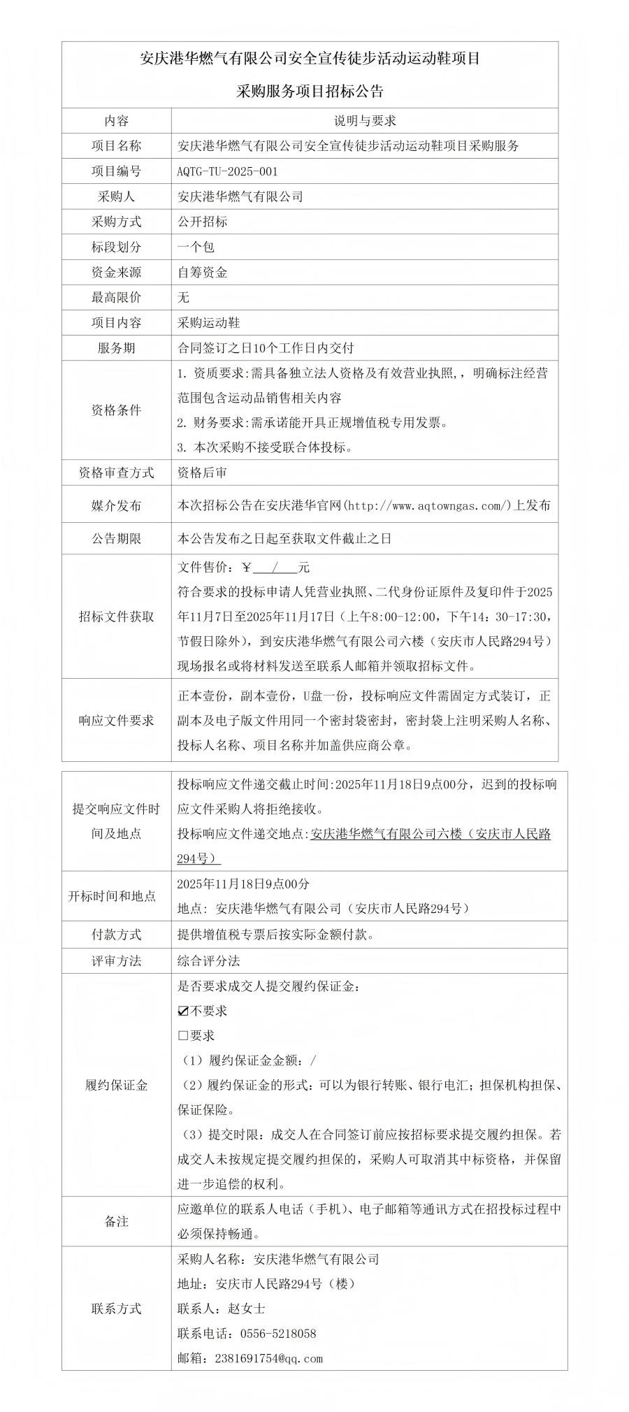 安慶港華燃?xì)庥邢薰景踩麄魍讲交顒?dòng)運(yùn)動(dòng)鞋項(xiàng)目采購(gòu)服務(wù)項(xiàng)目招標(biāo)公告 發(fā)布時(shí)間:2025-11-07    閱讀次數(shù):888次