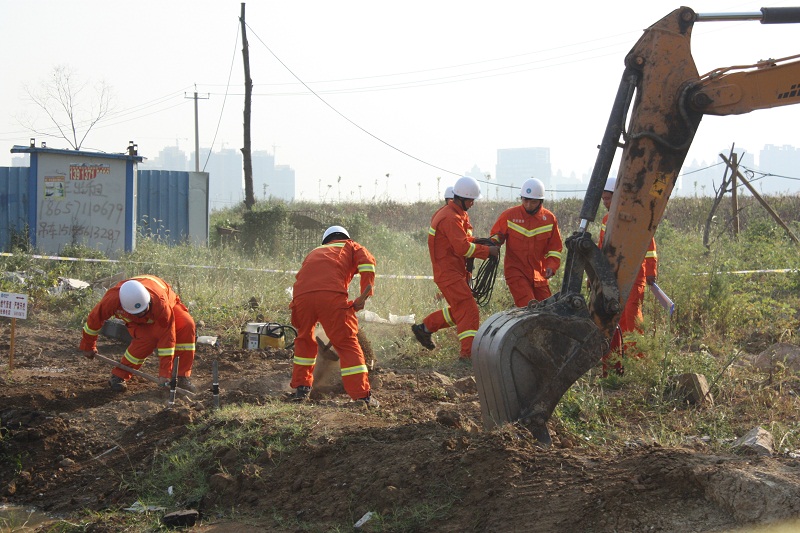 近年來(lái),隨著城市基礎(chǔ)設(shè)施及老舊小區(qū)改造工作不斷加快,工程建設(shè)對(duì)地下天然氣管網(wǎng)的安全運(yùn)行帶來(lái)的威脅亦不斷加大。現(xiàn)場(chǎng)模擬輝煌路中壓A級(jí)PE160燃?xì)夤艿辣坏谌绞┕挝黄茐?,安慶港華維搶修中心在接到搶險(xiǎn)指令后,迅速派出專(zhuān)業(yè)搶險(xiǎn)隊(duì)伍于30分鐘內(nèi)趕到事故現(xiàn)場(chǎng),并有條不紊地開(kāi)展事故現(xiàn)場(chǎng)控制、疏散警戒、現(xiàn)場(chǎng)信息傳遞、事故逐級(jí)報(bào)告、消防聯(lián)動(dòng)配合、搶險(xiǎn)方案制定、儀器裝備操作、停氣復(fù)供、事故現(xiàn)場(chǎng)調(diào)查等程序,通過(guò)多部門(mén)配合,最終成功控制險(xiǎn)情并修復(fù)了受損管道,恢復(fù)正常供氣。