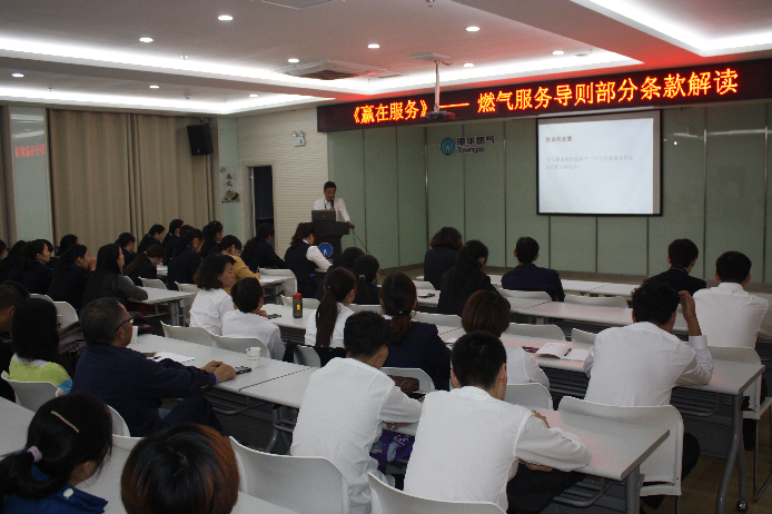 培訓(xùn)以重溫國(guó)家質(zhì)監(jiān)總局和標(biāo)準(zhǔn)化管理委員會(huì)共同發(fā)布的《燃?xì)夥?wù)導(dǎo)則》為切入點(diǎn),從企業(yè)的發(fā)展和應(yīng)承擔(dān)的責(zé)任出發(fā),結(jié)合日常工作,重點(diǎn)解讀燃?xì)夥?wù)的規(guī)范化;并利用案例分析,使大家對(duì)平時(shí)習(xí)以為常的服務(wù)觀念、服務(wù)行為有了更深入的認(rèn)識(shí),從中總結(jié)工作中成功經(jīng)驗(yàn)和好的做法,也認(rèn)識(shí)到還存在有待改善的地方。