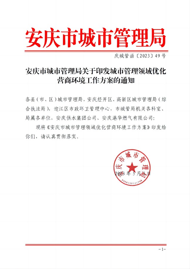安慶市城市管理局關于印發(fā)城市管理領域優(yōu)化營商環(huán)境工作方案的通知